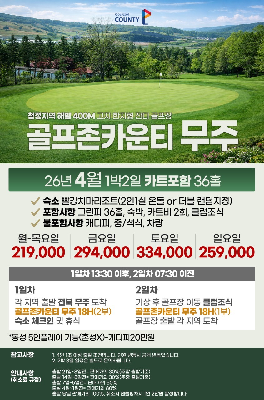 | 여행기간 | 2026년 04월 19일 (일) ~ 2026년 04월 20일 (월) 1박 2일 |